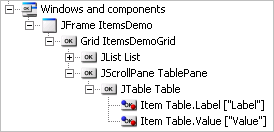 Figure 9.11 - NSuds Items Enregistrés pour la JTable Parce que les noeuds Item ne sont pas utilisés pour accéder à l'index secondaire, ils ont seulement été enregistrés pour l'index primaire, dans notre exemple pour les colonnes Label et Value. Si vous regardez les détails du noeud Item Label, vous verrez que seulement l'index primaire est utilisé au au sein du noeud Item.