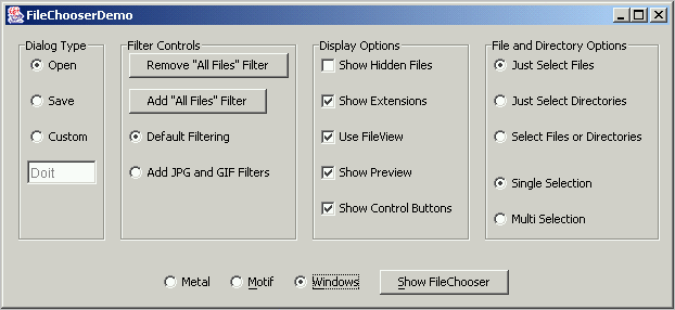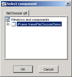 Figure 3.5 - Dialogue de Sélection de Composant Maintenant vous pouvez arrêter l'application FileChooserDemo et la relancer en exécutant le nSud Setup. Cela devrait vous donner :
